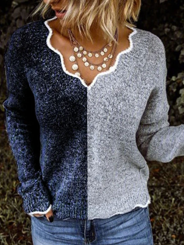 Wool blend casual V-neck sweater