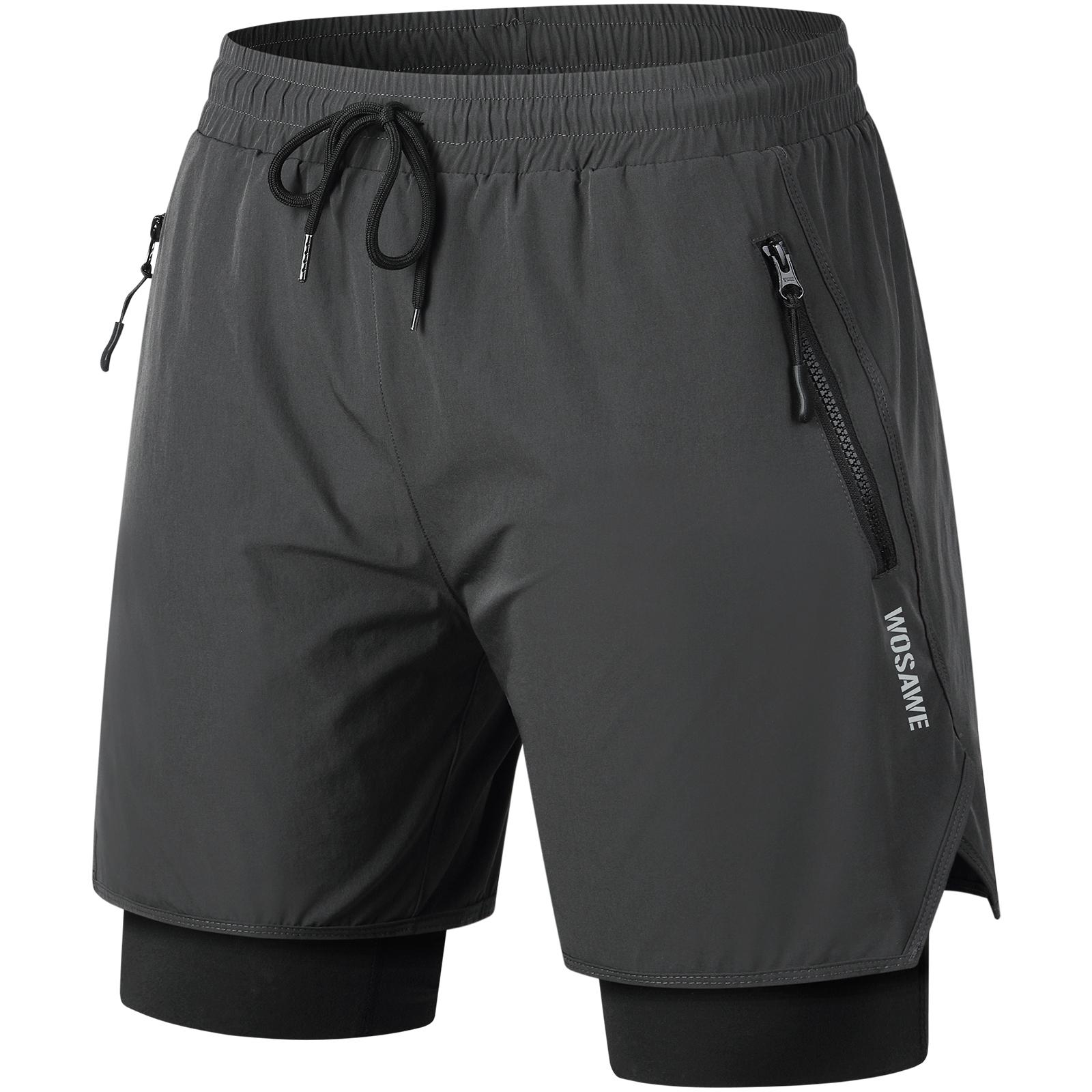 WOSAWE мужские и женские шорты для велоспорта MTB с подкладкой, карманами на молнии, дышащие, 2 в 1, шорты для горного велосипеда с подкладкой XL серый