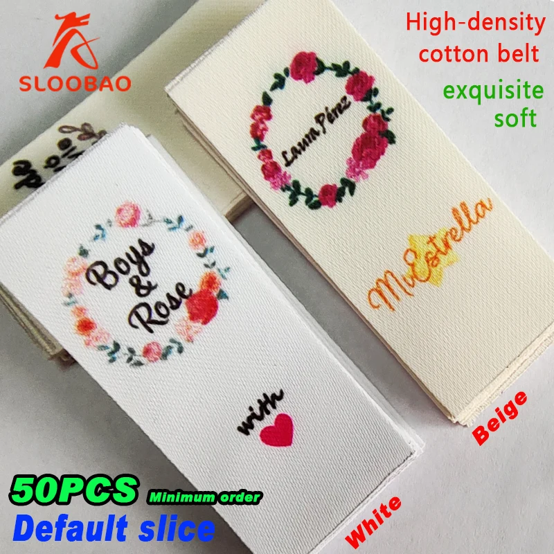 X 6 см индивидуальный логотип, персонализированная хлопковая этикетка, одежда, частная этикетка ручной работы, высокая плотность, хлопковая цветная печать, именные этикетки mqq50 шт.