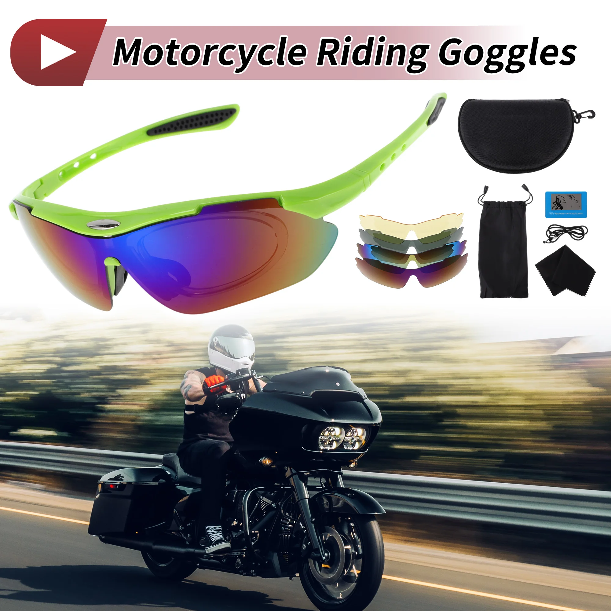 X Autohaux 1 Set Motorcycle Riding Goggles Green Lens Green Frame PC Cycling Goggles