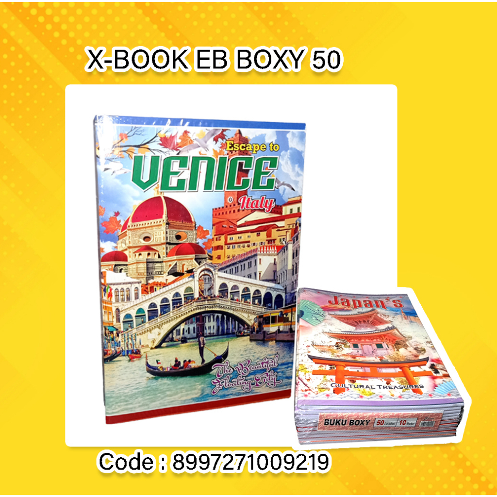 Buku tulis isi 50 Boxy lembar merk X-BOOK, motif random, 1 pak isi 10 pcs