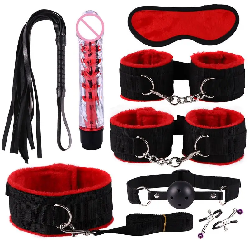 X3UE 8 шт./компл. эротический бондаж БДСМ секс-игрушки для взрослых наручники РТ кляп плетка зажимы для сосков повязка на глаза вибратор для па...