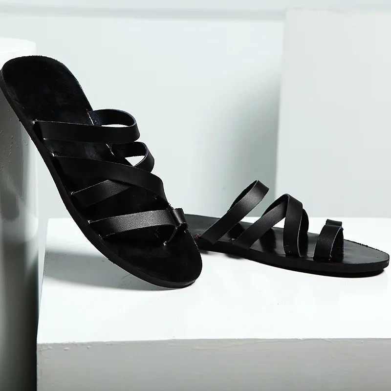women leather straw woven slides sandals slip on wedge flats fashion beach mule brand flip flops casual slides shoes platform chain rubber s, Black