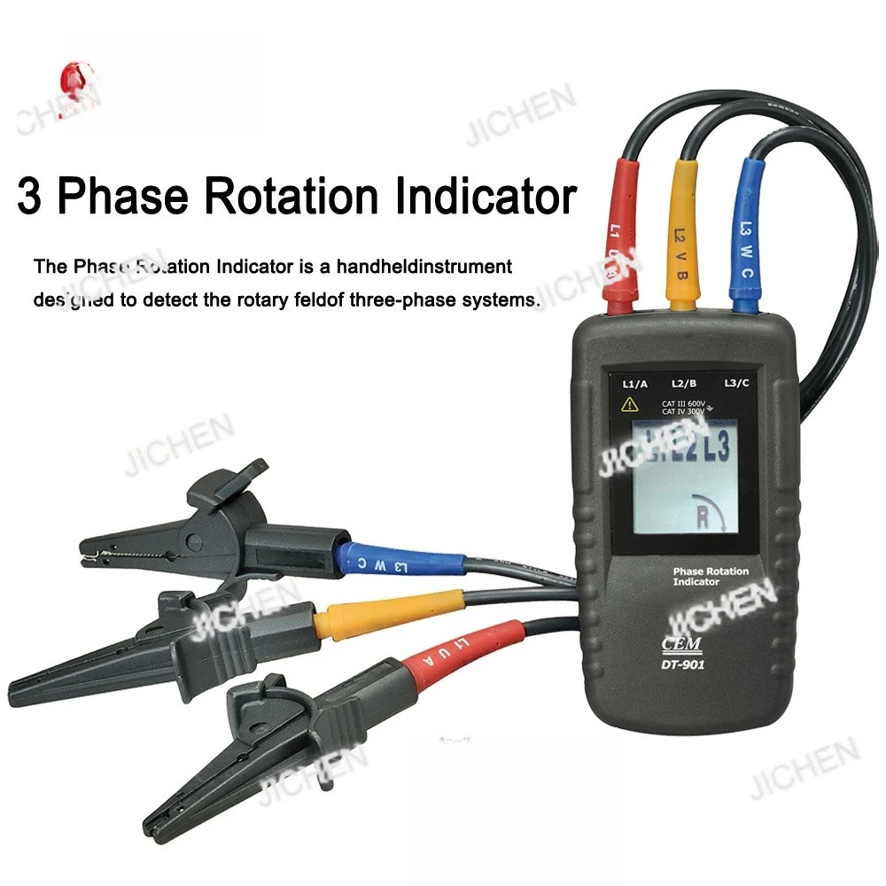 XCJ 3-Phase Rotation Indicator Meter, AC Phase Sequence Indicator 40V-690V AC With LCD Display