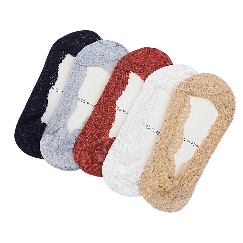 5 Pairs New Cotton Socks Women Lace Stockings Ladies Spring And Summer Shallow Mouth Invisible Boat Socks Non-Slip Silicone