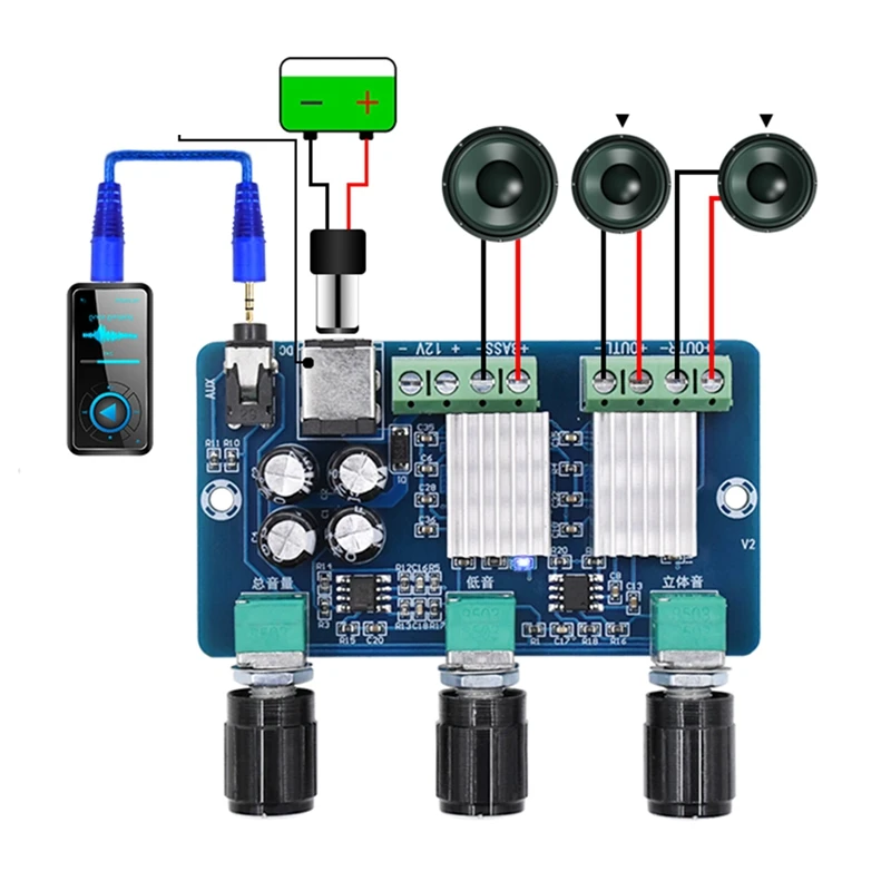 XH-A355 плата цифрового усилителя мощности 2,1 каналов с настройкой качества звука HD 2x15 Вт + 30 Вт