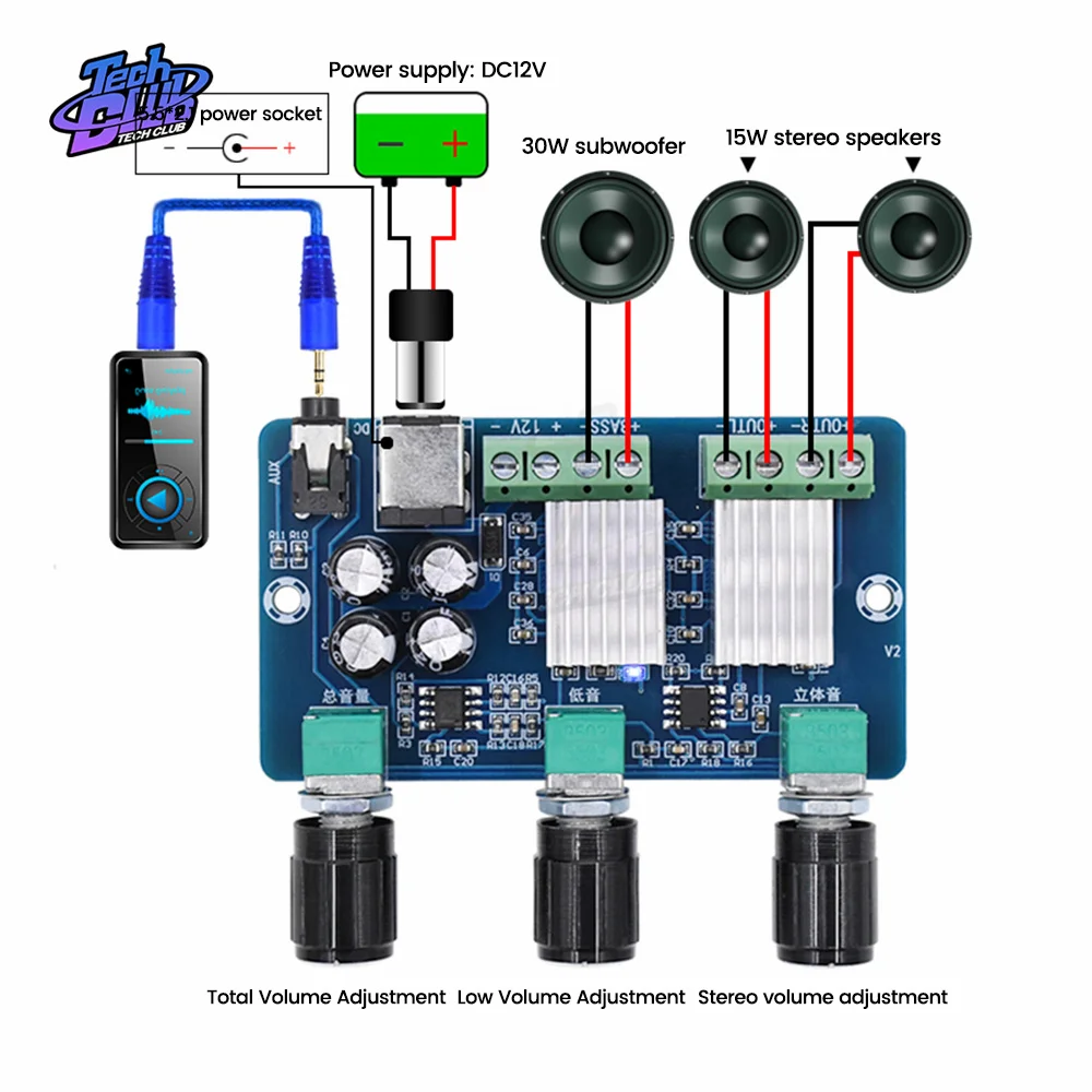 XH-A355 DC 12V 20W + 10W + 10W 2,1 Channel Stereo Audio, плата цифрового усилителя мощности, бас-сабвуфер для электронных компонентов
