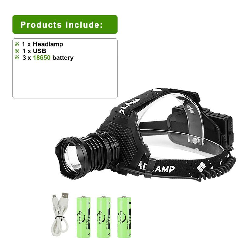 XHP 120 мощный налобный фонарь перезаряжаемый налобный фонарь Zoom водонепроницаемый налобный фонарь для рыбалки 3*18650 battery чёрный