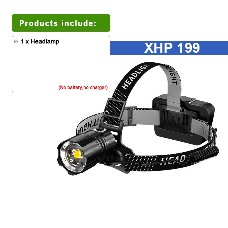 XHP199 Перезаряжаемый налобный фонарь высокой мощности, водонепроницаемый, регулируемый, 18650, налобный фонарь для альпинизма Kit A чёрный