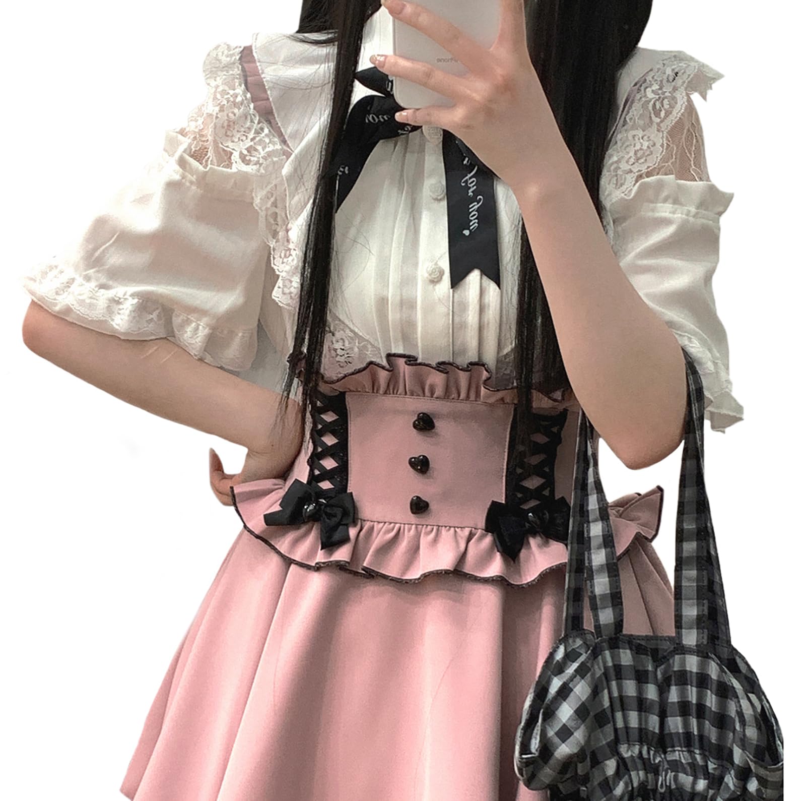 XHSUKADO Кружевная короткая цветочная открытая белая женская блузка, Рукав, С открытыми плечами, Принт, Лента, Рюши, Плечо, Бантик, Женственная, Милая, белый