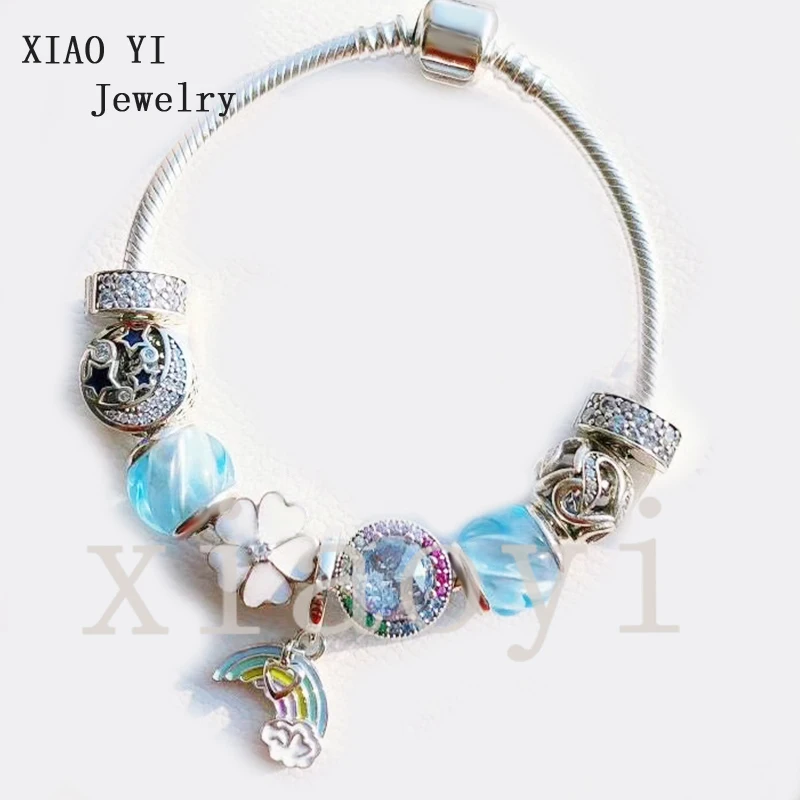 XIAOYI 2020 Новый 100% S925 Радуга Цветок Браслет Звезда и луна цветной Глазурь Любовь браслет отправить девушка свадьба женщина
