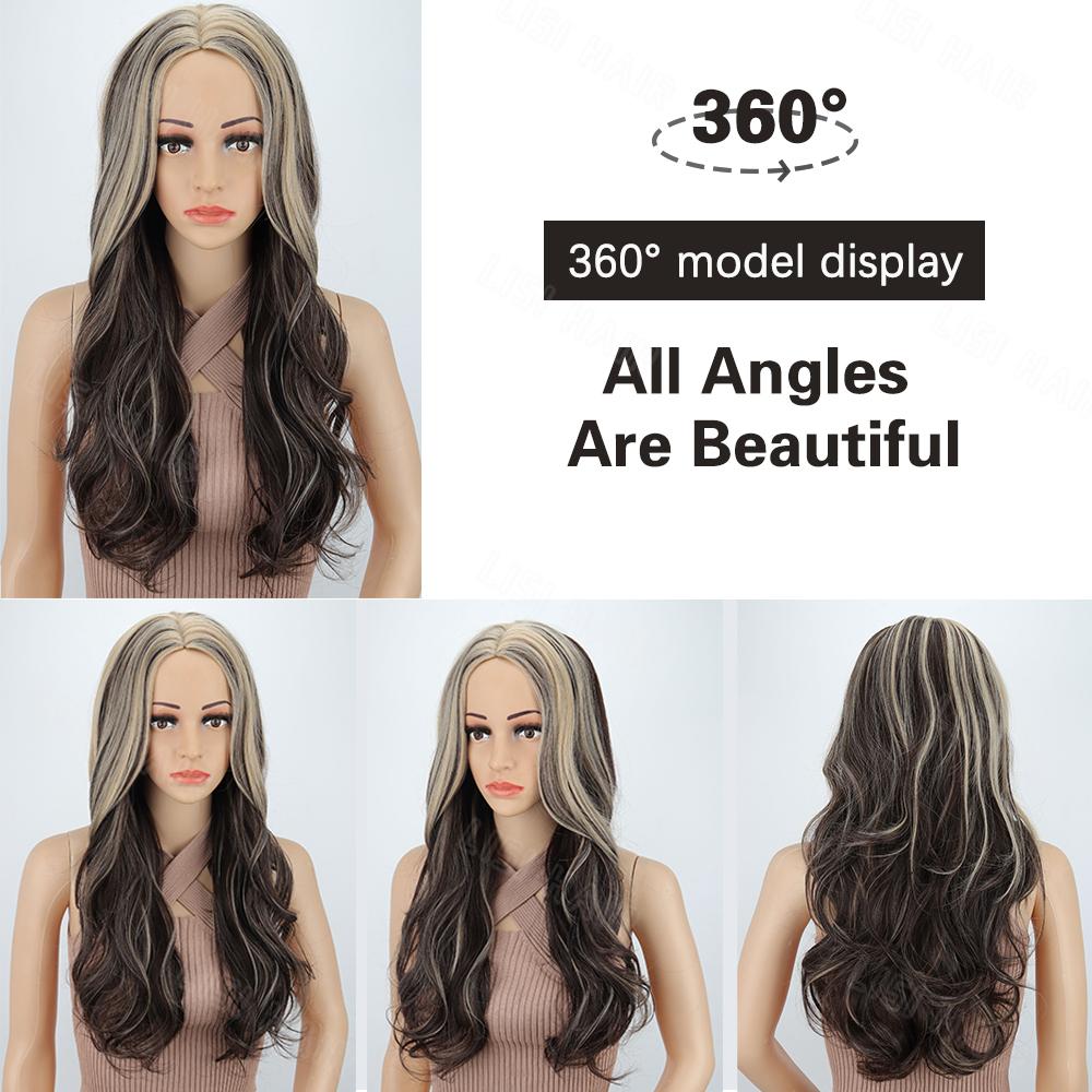 XINRAN Синтетический длинный светлый парик с темными корнями, свободные волнистые парики для женщин, повседневная одежда для косплея 60cm