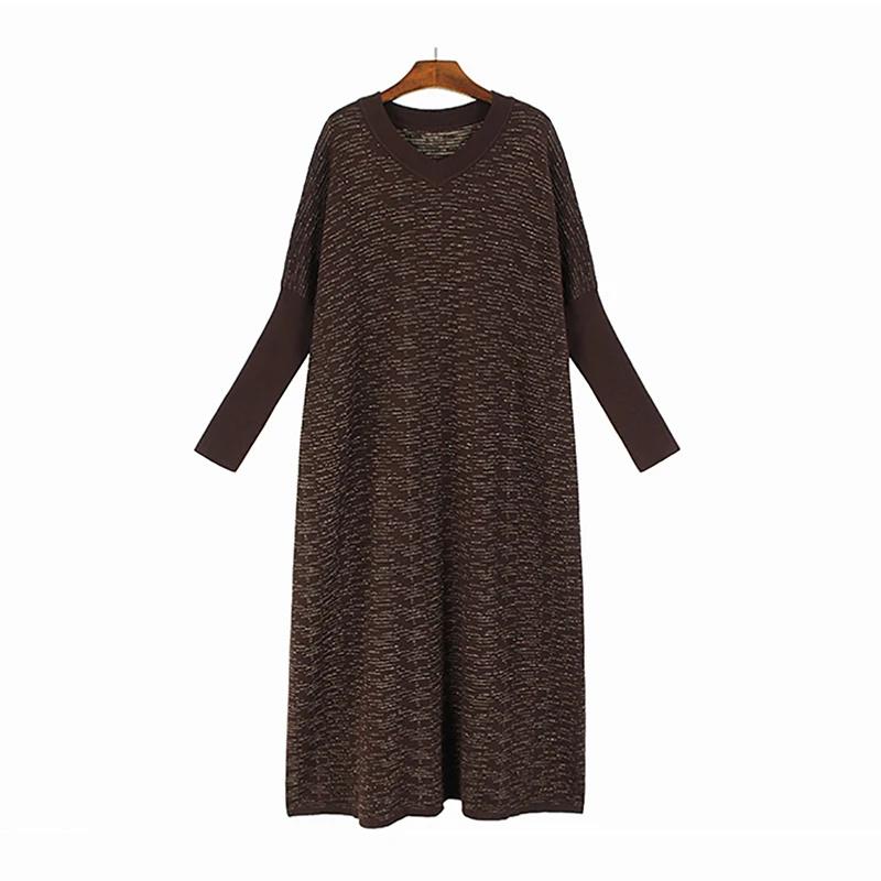XITAO Вязаное платье Яркое шелковое модное повседневное свободное платье с длинными рукавами DMJ3695 One Size кофейный