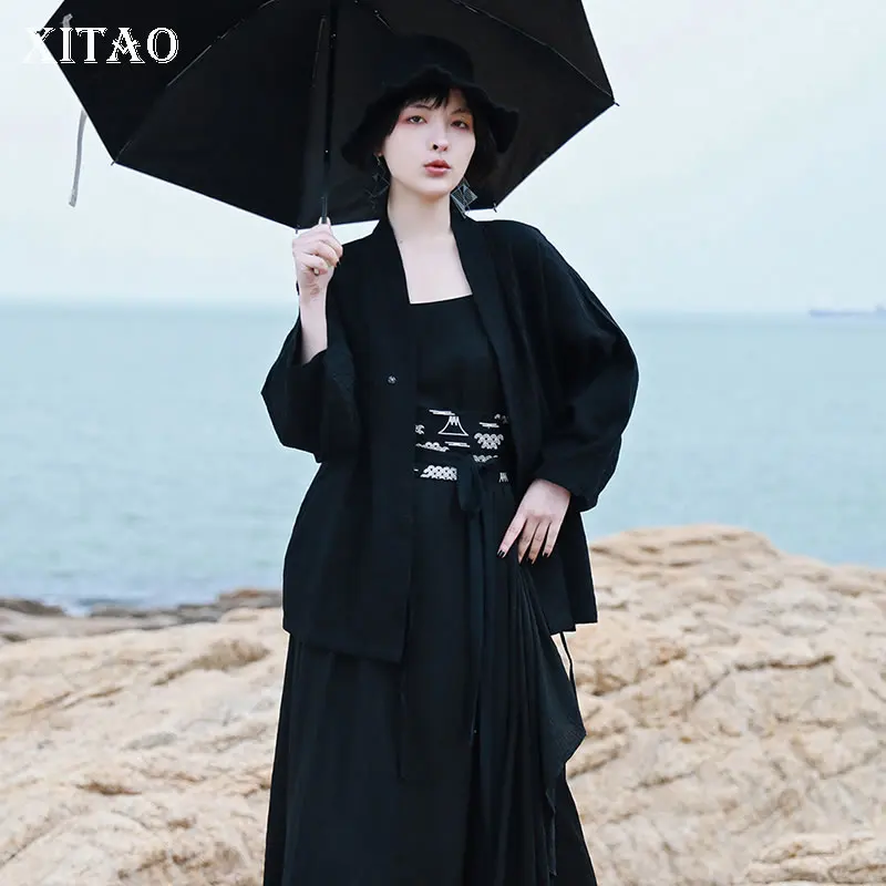 XITAO, Черное Женское пальто на завязках, модное, новое, женское, свободный рукав, повседневный стиль, простота, универсальная, 2021 WMD2067