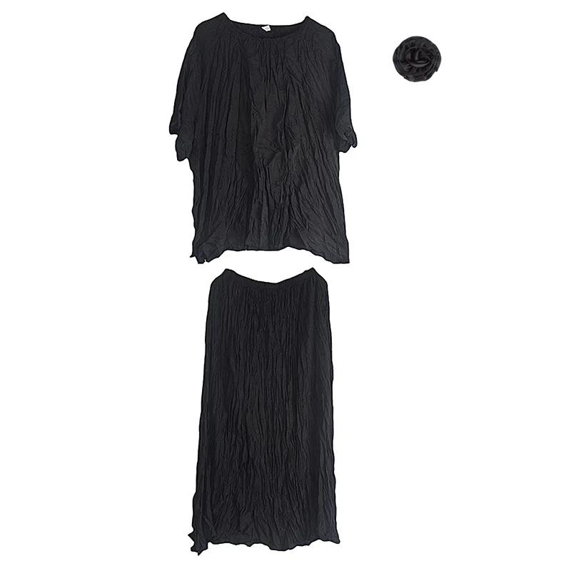 XITAO комплект из двух частей с круглым вырезом, однотонная юбка трапециевидной формы с половиной рукавов, LYD1836 One Size оранжевый