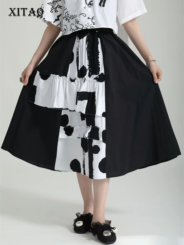 XITAO контрастная цветная Асимметричная юбка; Новинка 2023 года; Летняя Повседневная модная юбка трапециевидной формы с эластичной резинкой на ...