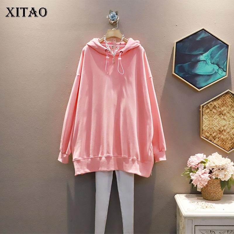 XITAO повседневная женская толстовка свободный пуловер модный топ с капюшоном WMD2700 One Size розовый
