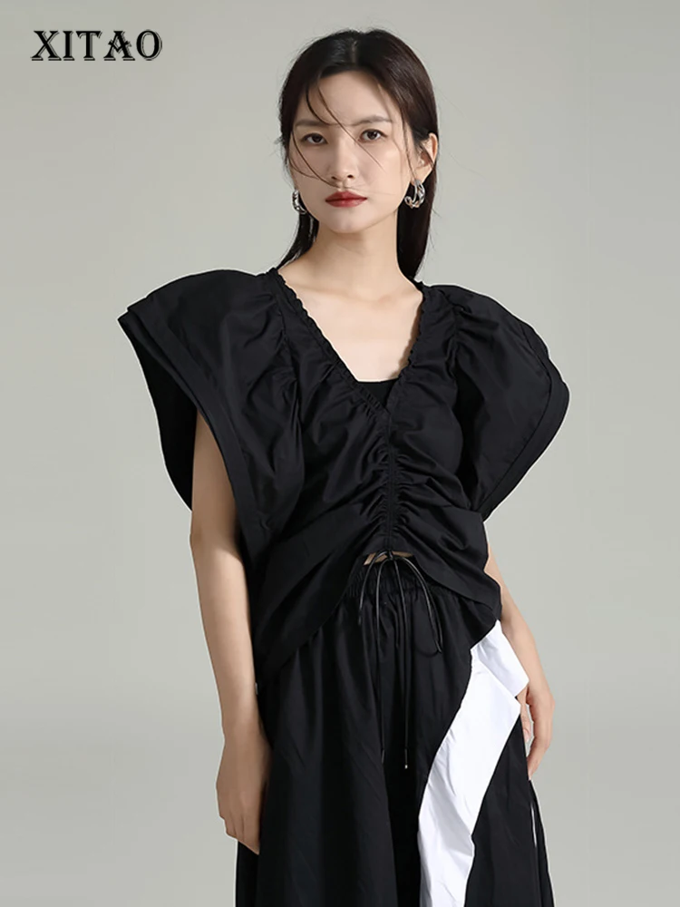 XITAO рубашка с v-образным вырезом и завязками, модная простая Летняя Повседневная рубашка HQQ0692