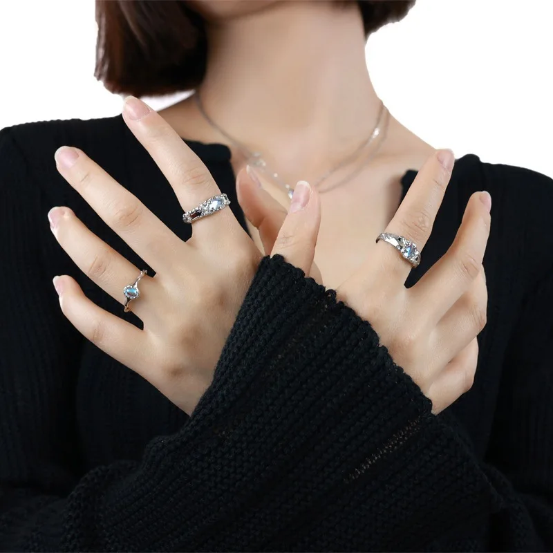 XIYANIKE 2022 New Moonstone Open Cuff Finger Rings for Women Girl New Fashion Trendy Jewelry Friend Gift Party кольцо женское