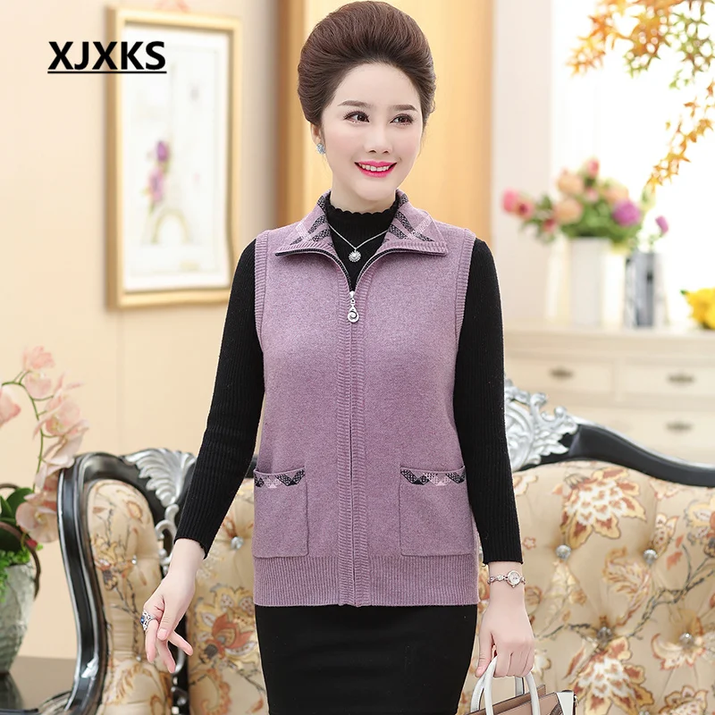 XJXKS, новинка осень-зима 2022, Свободный кардиган на молнии большого размера, женский жилет, вязаный шерстяной жилет высокого качества
