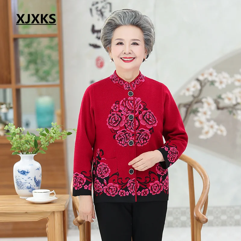 XJXKS, новинка осень-зима 2022, свободные однобортные женские куртки большого размера для мам среднего и пожилого возраста