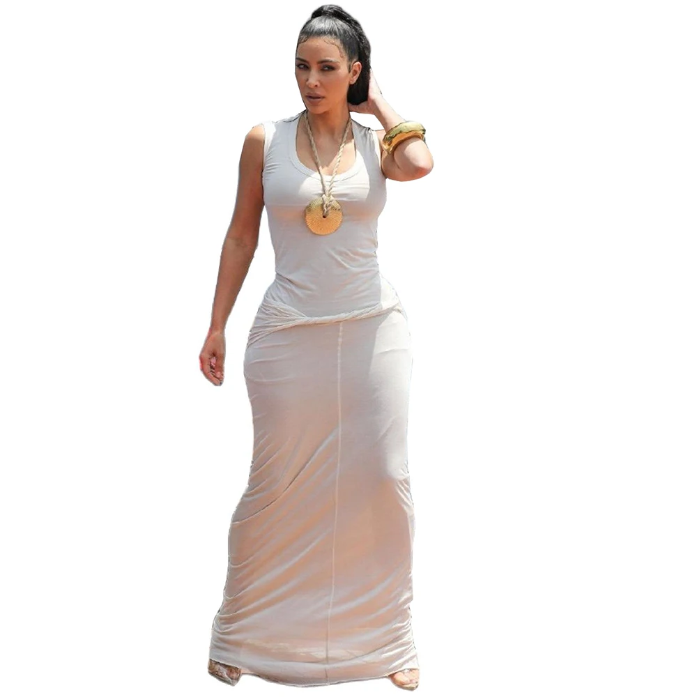 XLLAIS вязаные мягкие белые длинные вечерние платья для женщин пикантная майка без рукавов уличная одежда плотное облегающее плотное платье