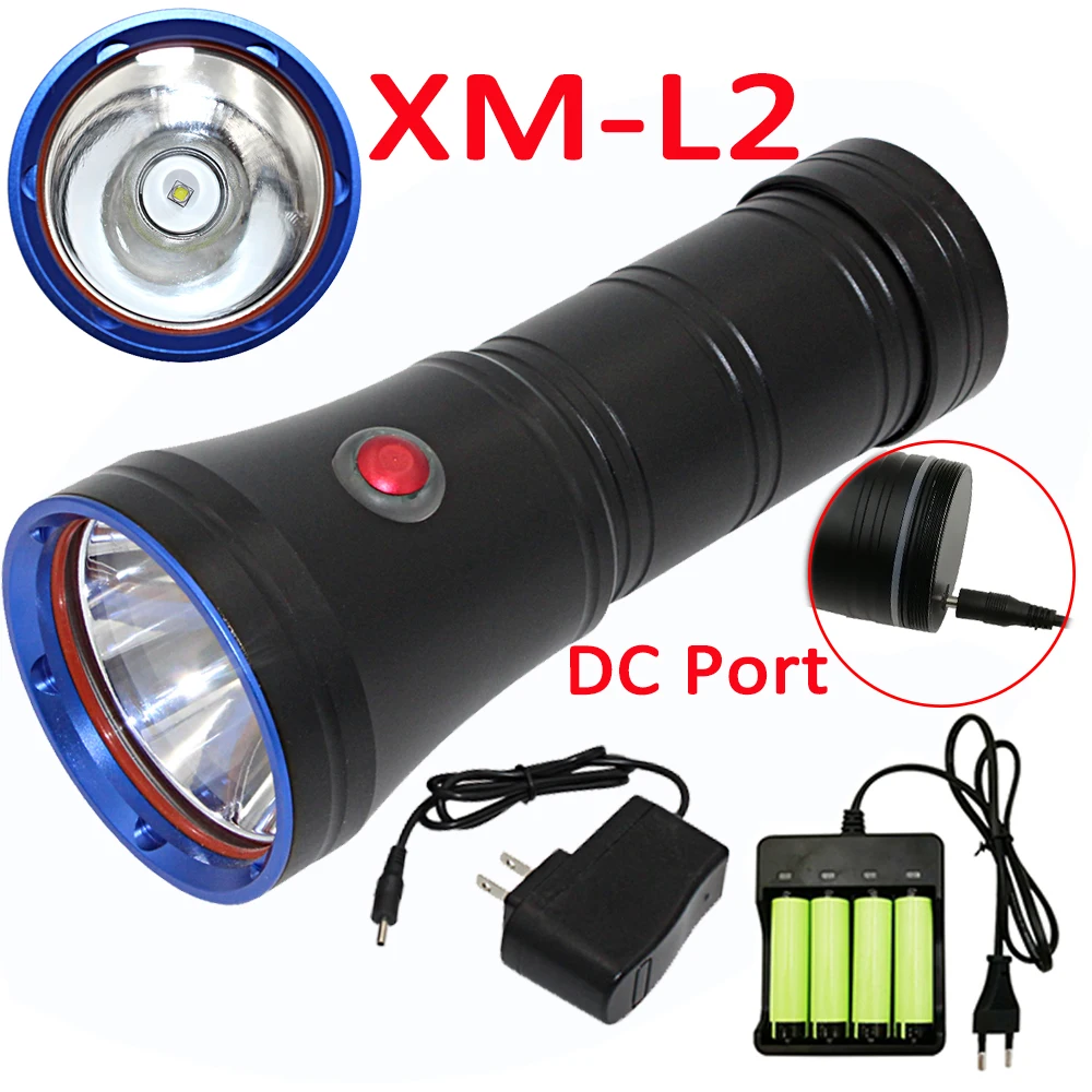 XM-L2 лм, подводная перезаряжаемая светодиодный фонарик для дайвинга, 18650 Водонепроницаемый фонарик, 4 аккумулятора, зарядное устройство