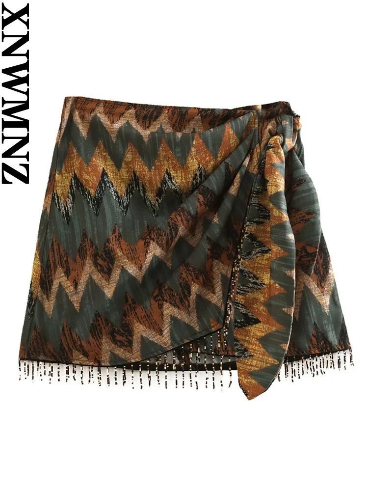 XNWMNZ 2022, женская модная юбка с бисером и принтом, ретро, уличная Женская шикарная мини-юбка на молнии сзади