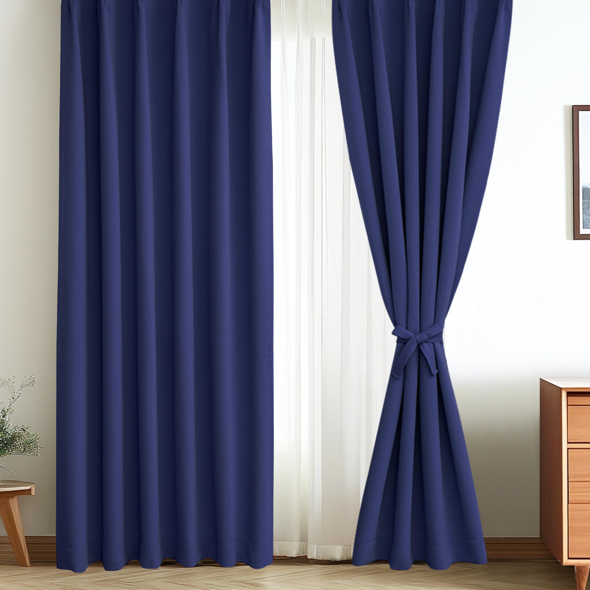XWZO Затемняющий комплект из 110 см длиной x 100 см блоков, перекрывающих уровень 1 затемнения, термо-мемори, однотонный, для спальни или гостиной, темно-синие шторы, 2 шт., широкие, 99,99%