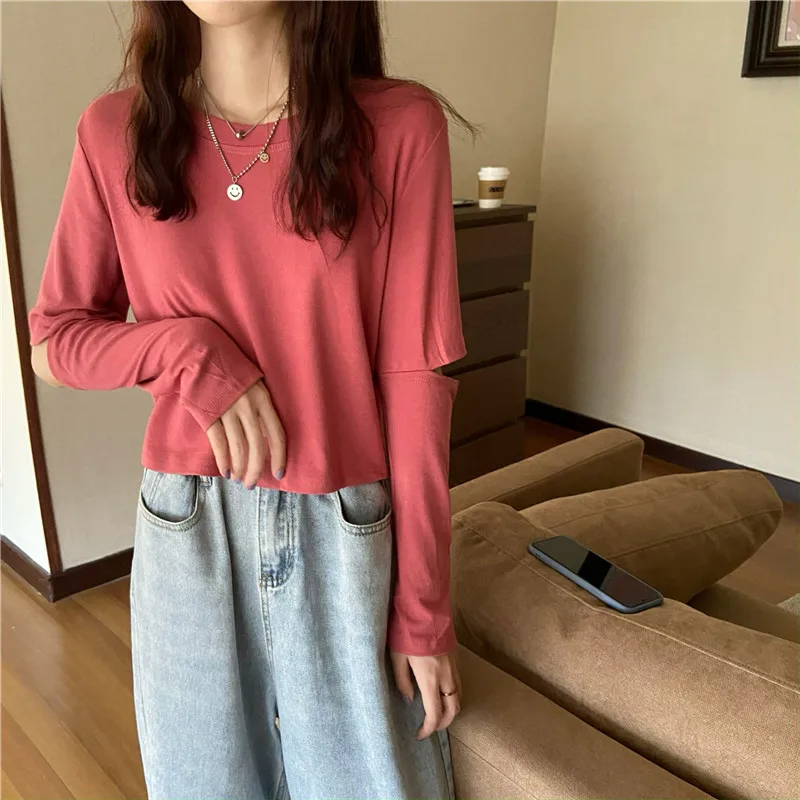 XZ2836 нишевая универсальная короткая куртка и футболка с длинным рукавом для женщин