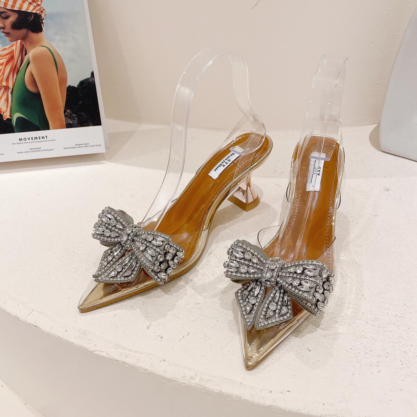 Xibeilove летние новые женские модные остроносые прозрачные босоножки из ПВХ с бантом и стразами на высоком каблуке 35