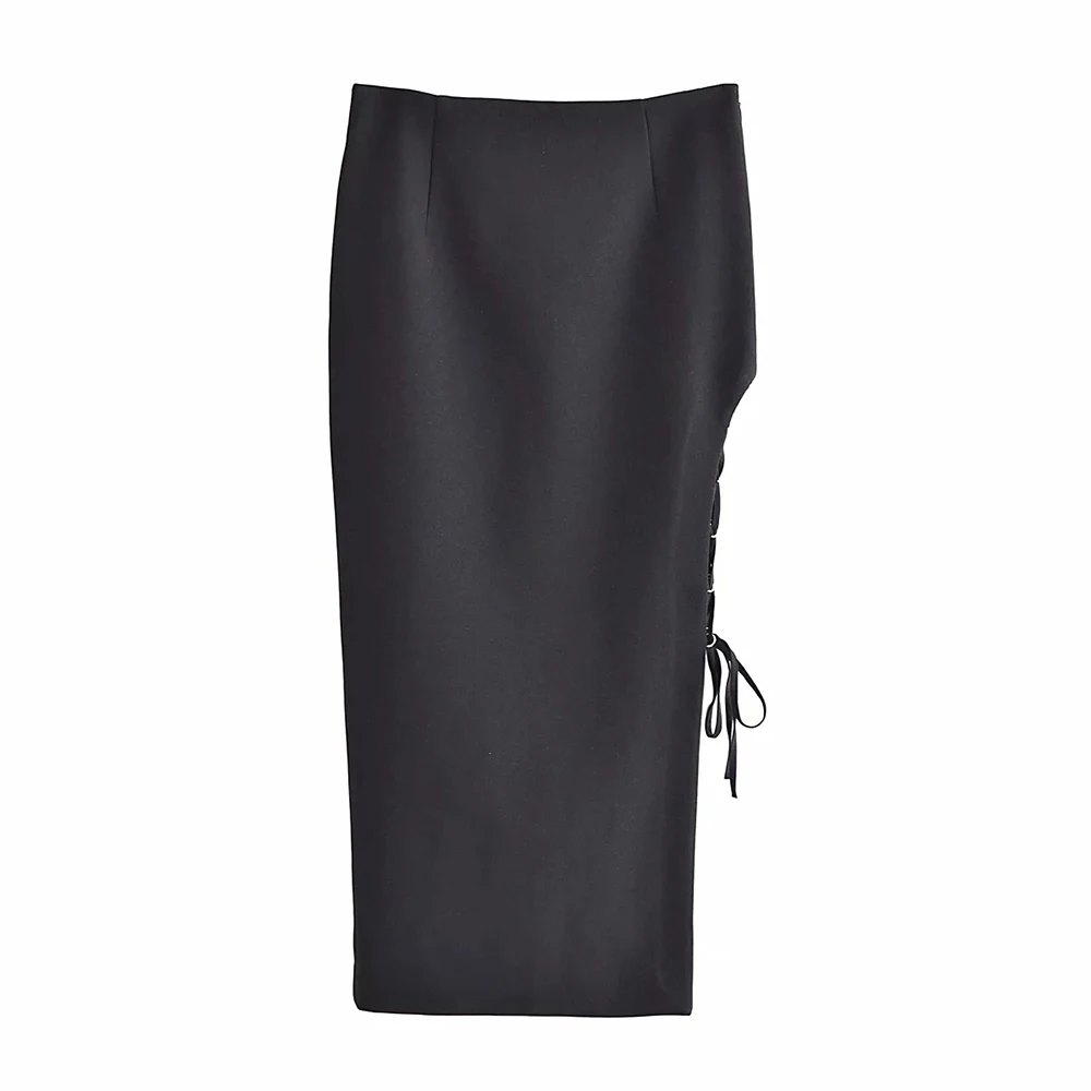 Xikom 2021 Женская винтажная Повседневная Элегантная черная юбка, женская модная уличная одежда, облегающая юбка миди с высокой талией, шикарны...