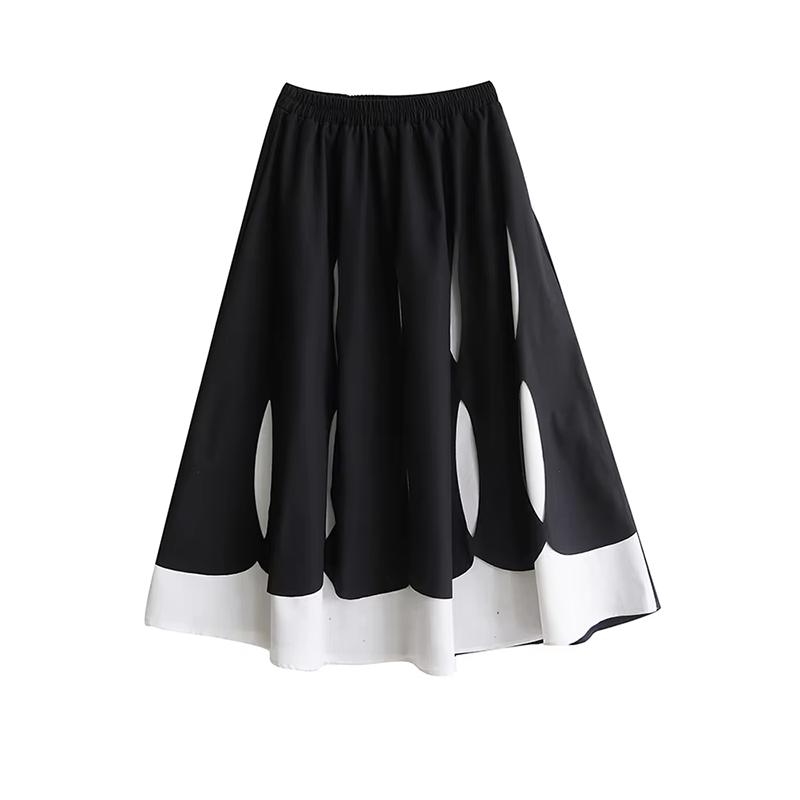 Xitao Юбка-трапеция в стиле пэчворк контрастного цвета GYX1618 One Size чёрный
