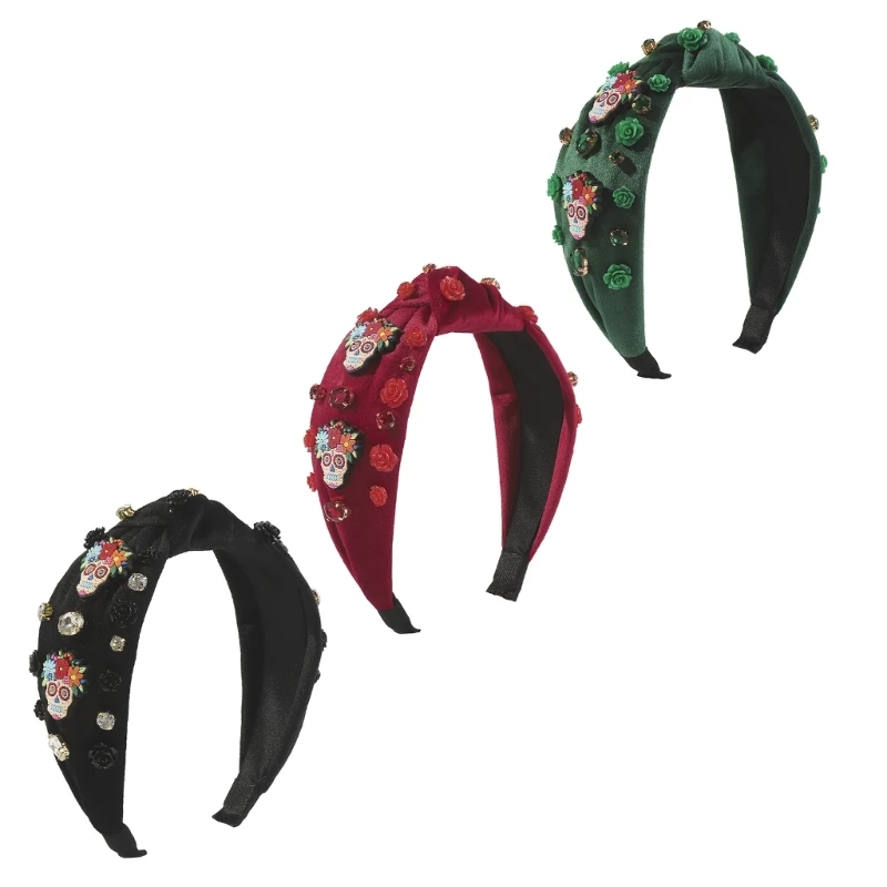 Y166 Женская повязка для волос с широкими полями для девочек, йога-спа, спортивная повязка для волос «День мертвых»