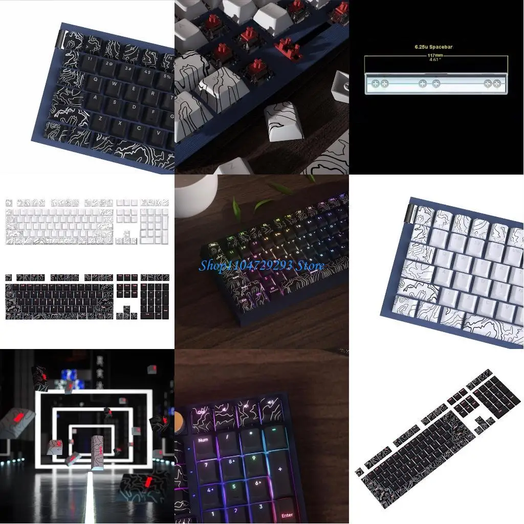 Y2GD Elegant Translucent Front Engraved Backlit Keycap 108Pcs Comfort Height Line White for Mechanical Keyboards