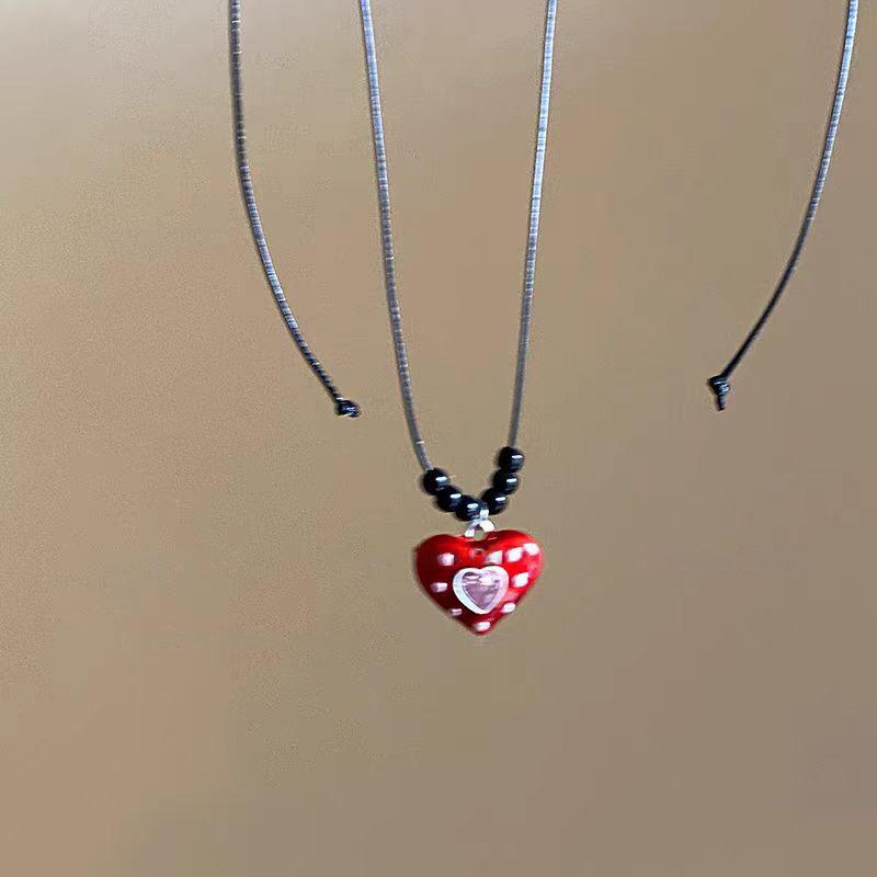 Y2K Красное Сердце Гриб Кулон Ожерелье Модная Цепочка на Ключицу Шнурок Милый Изысканный Девушки Ювелирные Изделия Аксессуары Подарок