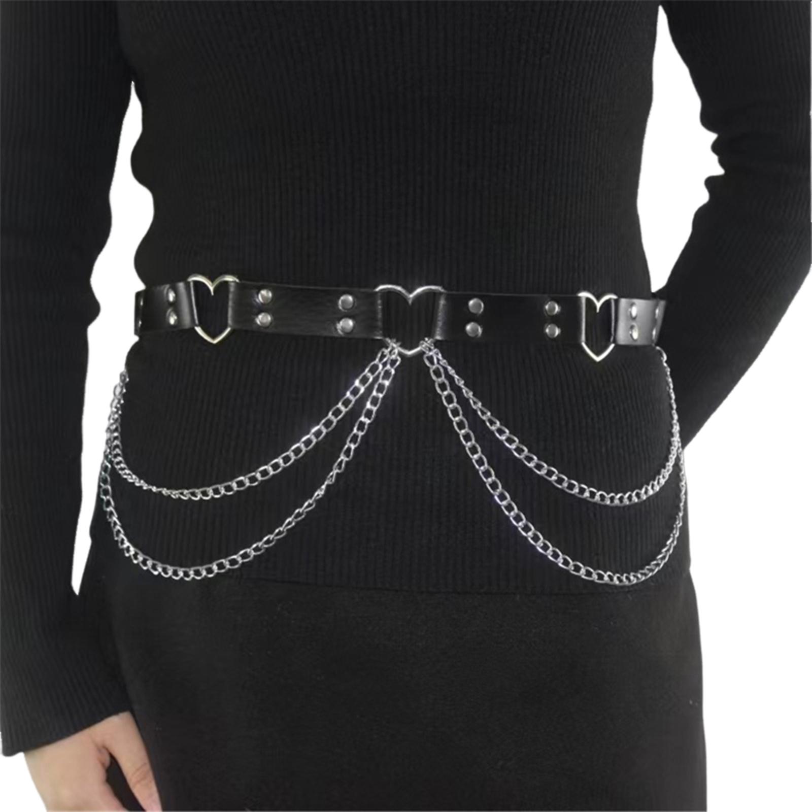 Y2K панк цепь для тела для платья сценические танцы для женщин девочек пояс с заклепками пояс для горячих девушек заклепки сердце чёрный