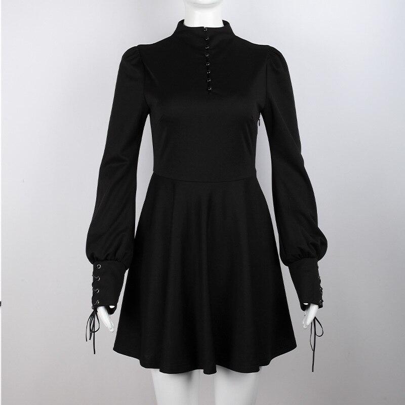 Y2K черное готическое платье женское готическое бандажное мини-платье в готическом стиле в стиле Харадзюку в стиле панк с длинным рукавом на шнуровке сетчатое платье L чёрный