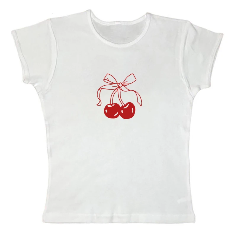 Y2k Топ, Готическая детская футболка, футболка с коротким рукавом, Ретро футболка с принтом вишни, женская короткая одежда, короткий топ с круглым вырезом, короткая футболка