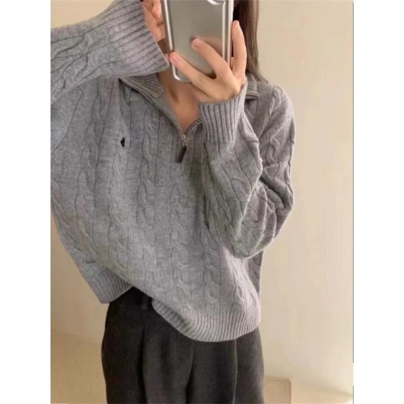 Y2k винтажная уличная одежда трикотажные пуловеры женские корейский стиль повседневный свитер с вышивкой на молнии осень 2024 S серый