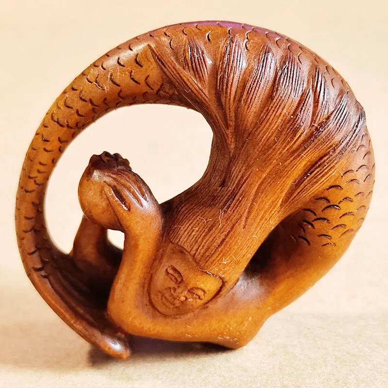Y8371 - 2 "резная вручную фигурка сетки из бокса, резьба: цикалярная Русалка