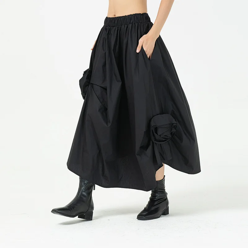 Women Stand Pod Skirt Thin Flower Decoration Half Skirts 2023 Ladies Temperament Spring New Design Sense Irregular Skirt