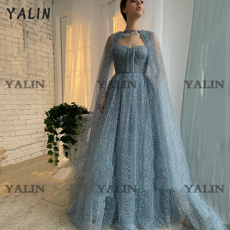 YALIN блестящие платья с открытыми плечами для выпускного вечера в пол белые горошек звезды тюлевые вечерние платья океанская синяя Фея вечер...