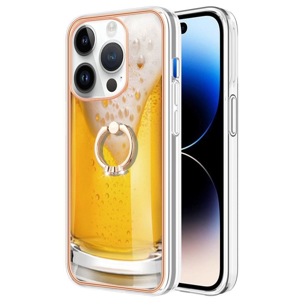 YB IMD Series-20-style D Anti-drop-kickstand-hülle Für Iphone 15 Pro Max Imd-muster 2,0 mm Elektroplierende Tpu-telefonschale - Bier, iPhone 15 Pro Max