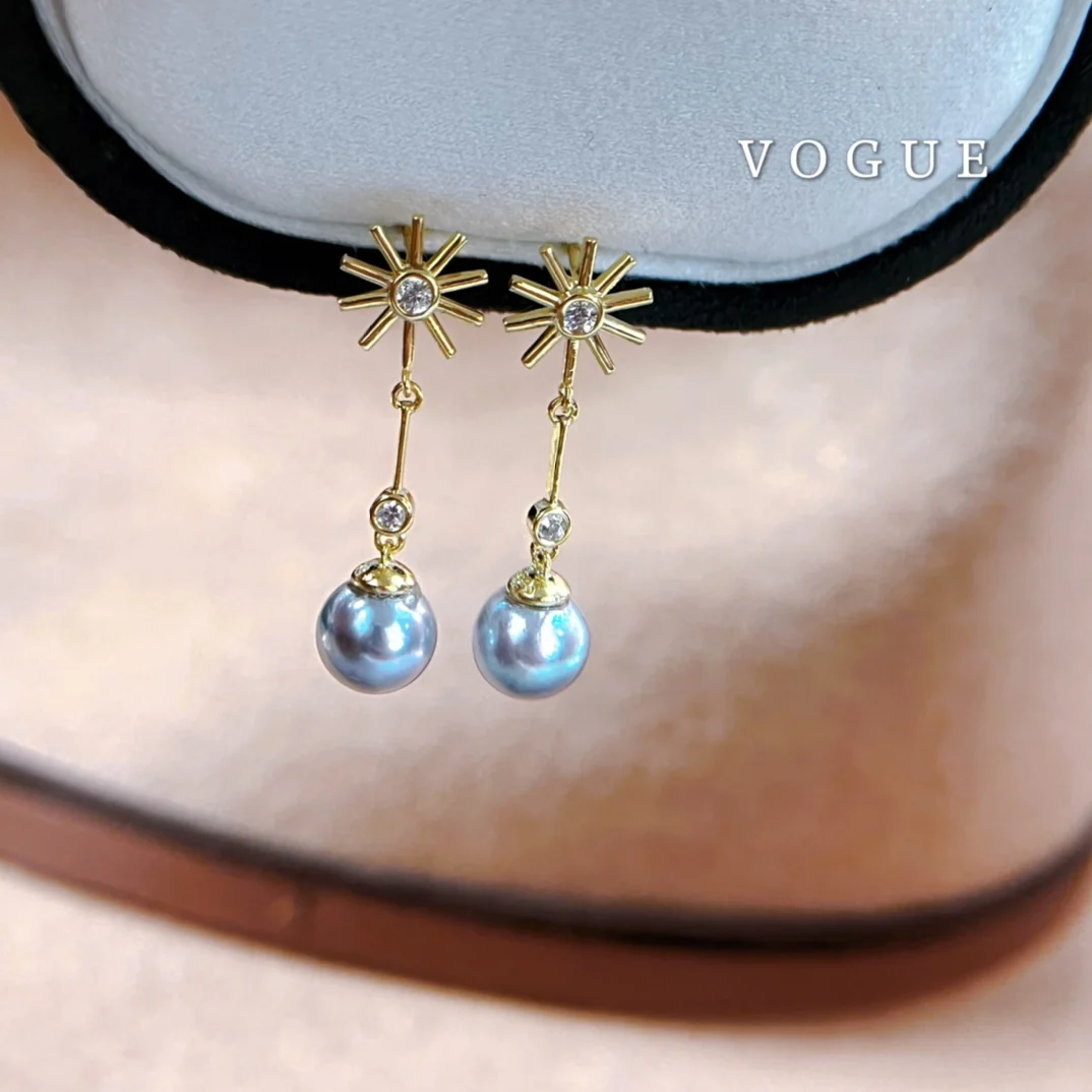 YB2024, чистые серьги-гвоздики из серебра, круглые, 7-8 мм, Япония, морская вода, голубовато-серый жемчуг, серьги-гвоздики, женские серьги с мелким жемчугом, застежки