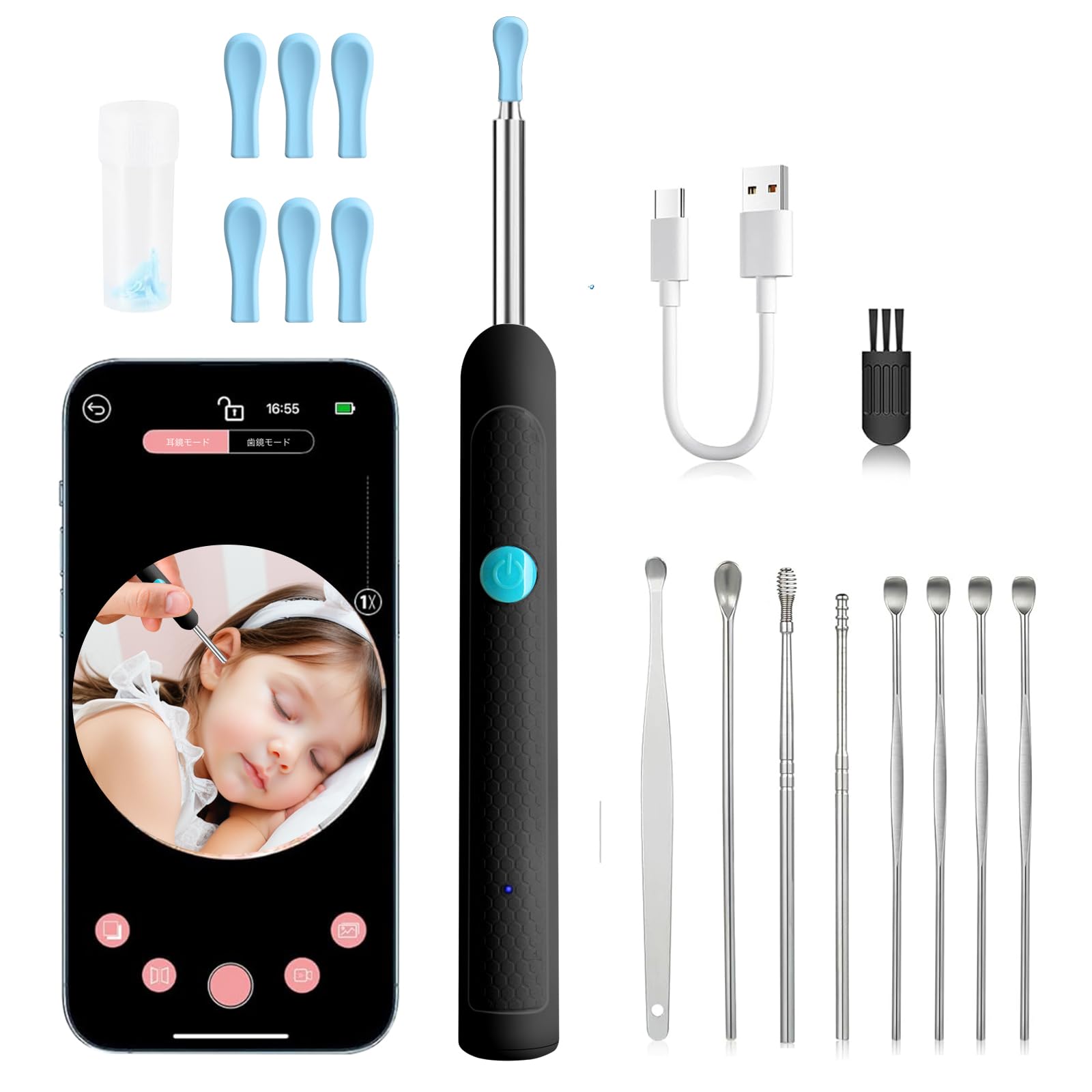 YESMOO Ухочистка с камерой Инновационная версия 15 миллионов пикселей Ухочистка с инверсией уха Ушная сера Специализированная IP67 WIFI Ухо Ушная сера Совместимая с чёрный