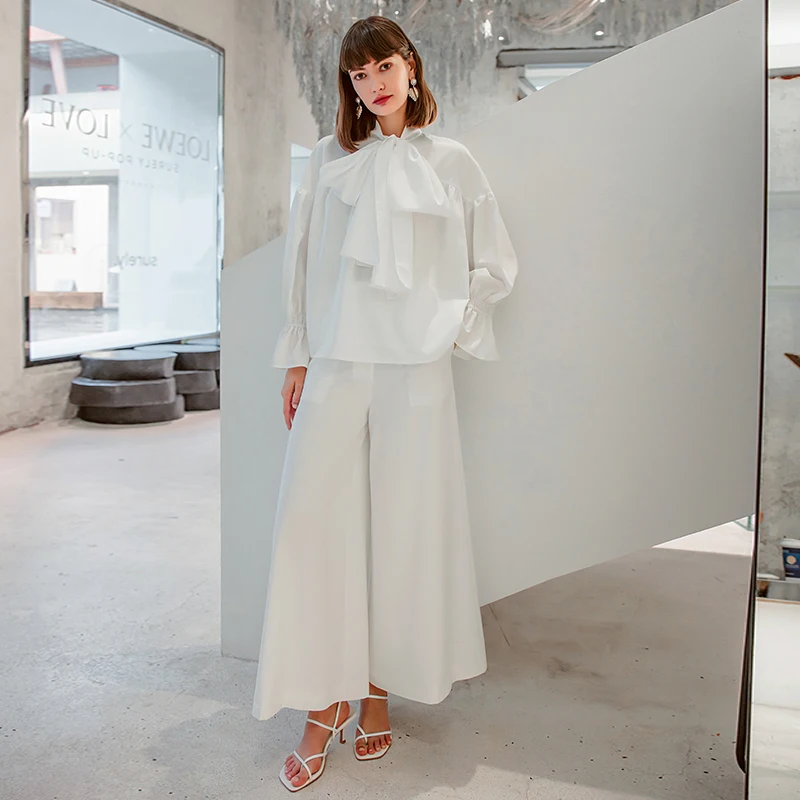 YIGELILA женская модная блузка с бантом элегантная Однотонная рубашка, блуза шикарные топы 71059