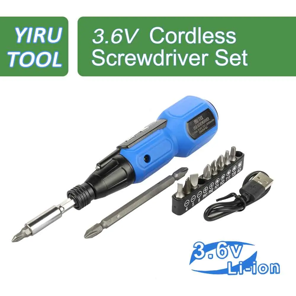 YIRU TOOL USB Charged Li-ion Battery Power Screwdriver Set with 9 Changeable Bits for Home Improvement And Electronics