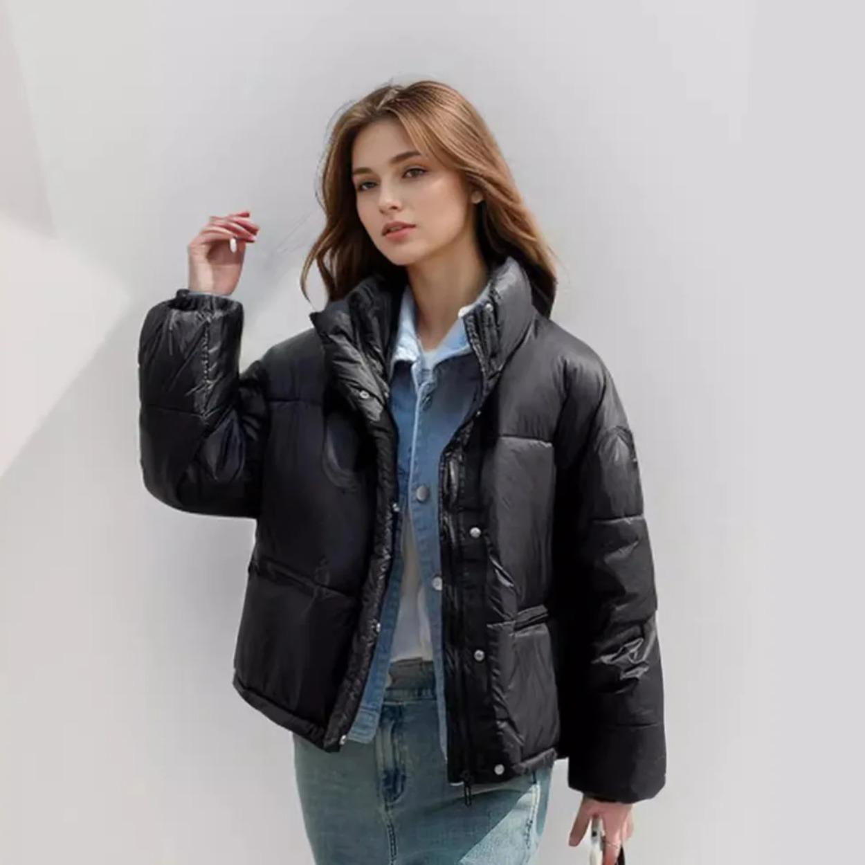 YJKDYK 2024 зимняя женская хлопковая куртка женская с чистым воротником утолщенная теплая куртка для хлеба женская с высоким воротником утолщенная парка пальто XL чёрный