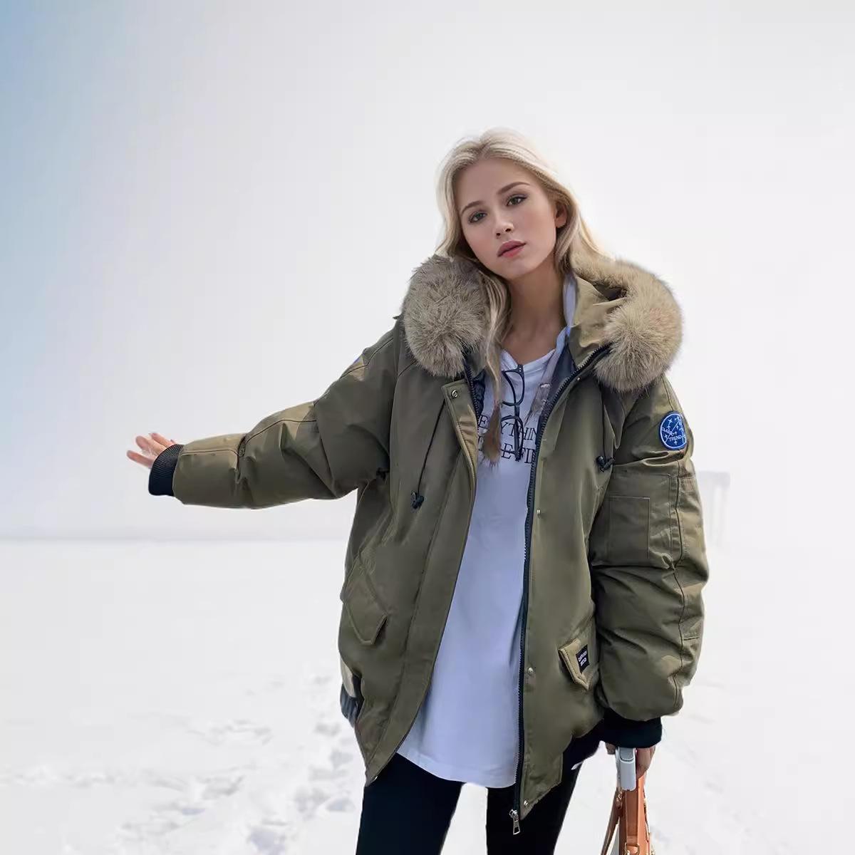 YJKDYK 2024 зимняя куртка женская парка пальто женская меховой воротник с капюшоном парки хлопковая куртка женская теплая зимняя одежда стеганая одежда XL армия зеленый